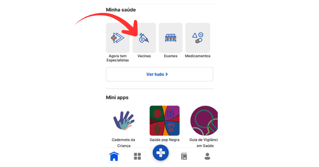 3️⃣ Na tela inicial, toque em “Vacinas”.